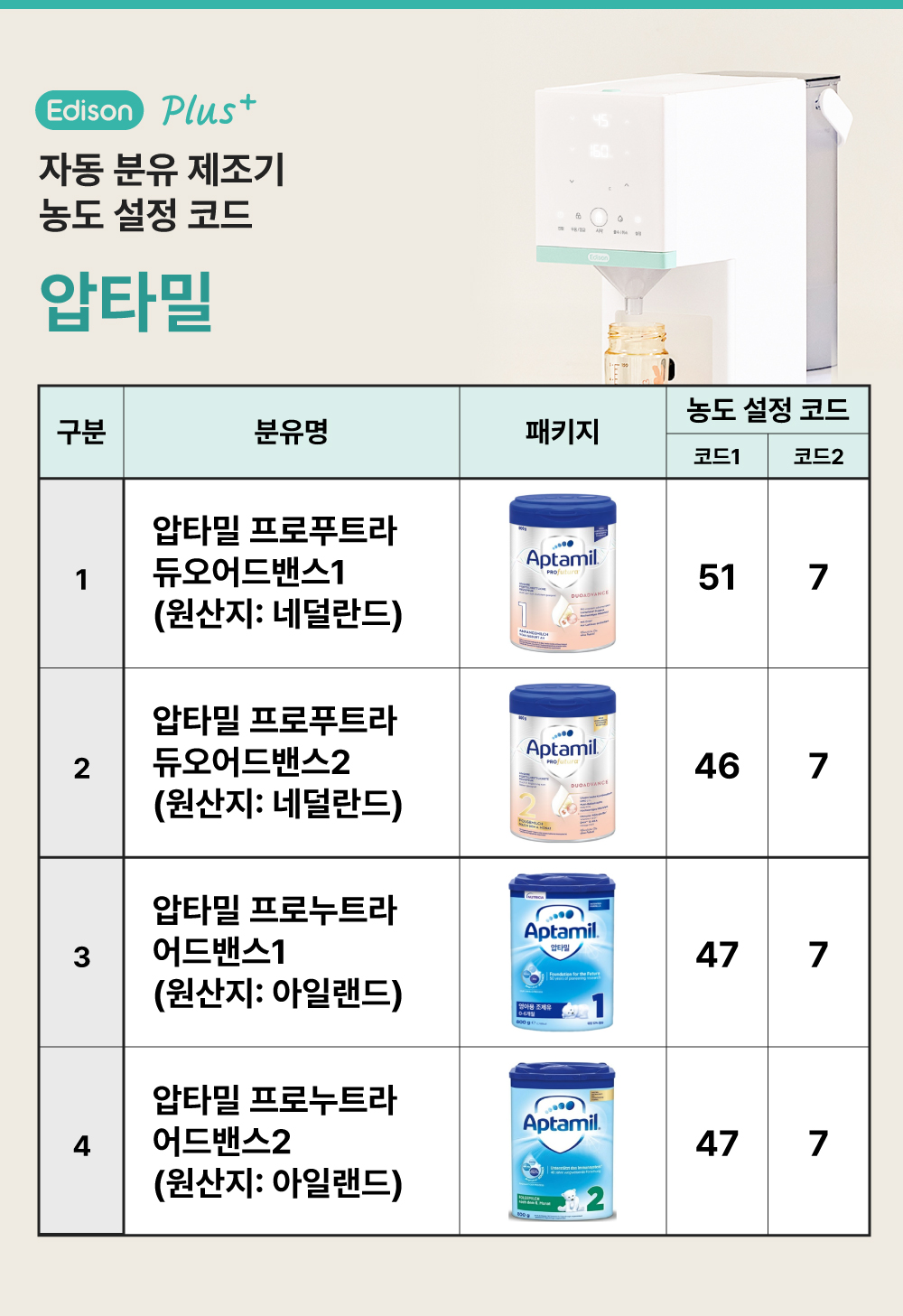 [커뮤니티] 에디슨 플러스 자동 분유제조기 농도 설정 코드 [압타밀]